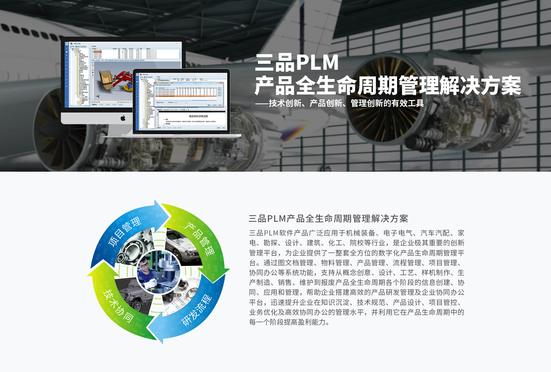 三品软件产品及解决方案广泛应用于机械装备、电子电气、汽车汽配、家电、建筑设计、化工、院校等行业,是企业重要的创新管理平台,为企业提供了一整套全方面的数字化产品生命周期管理PLM平台。